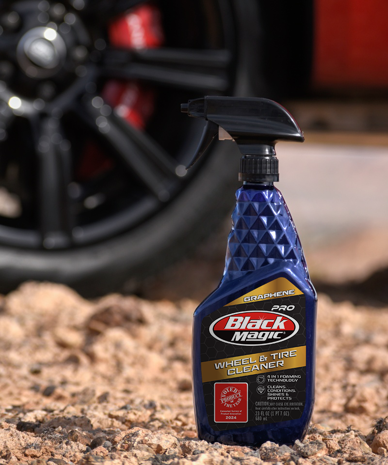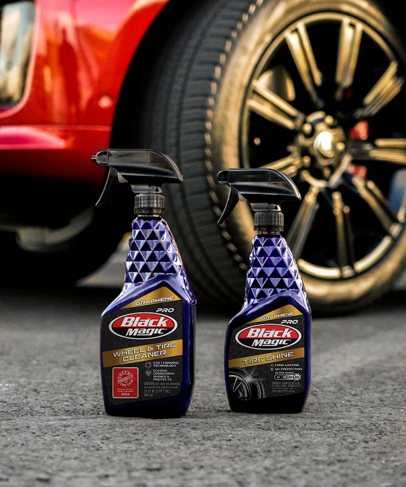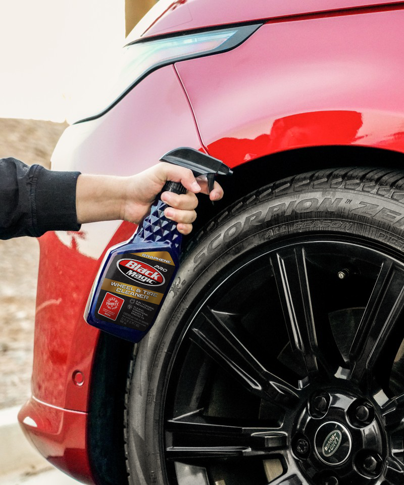 Pro Tip: For best results, clean one wheel at a time. For a final touch, finish tires with Black Magic® Pro Graphene Tire Shine