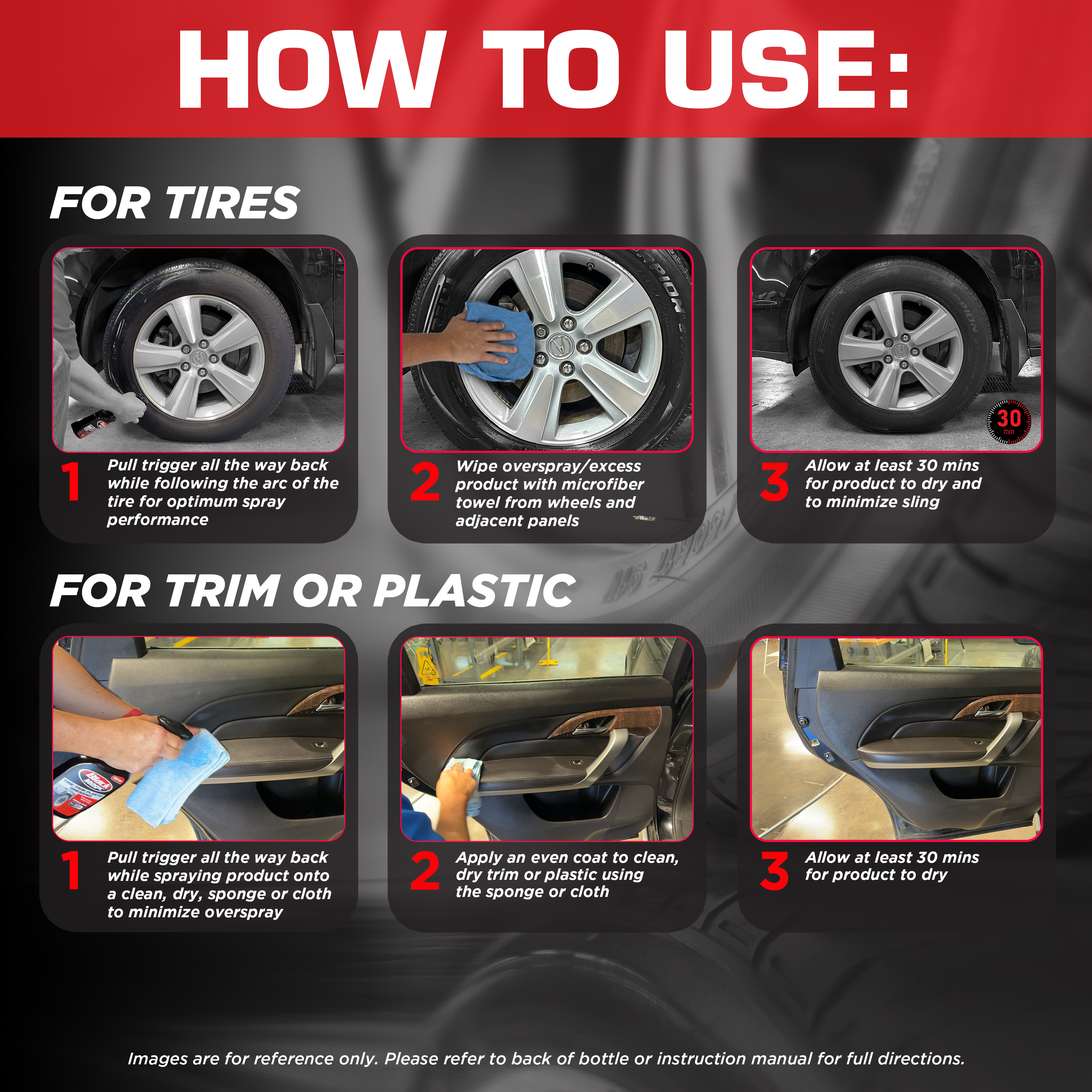Pro Tip: For a more controlled Tire Shine, follow Trim or Plastic directions